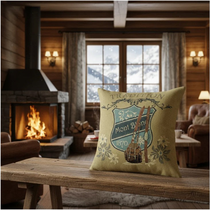See companion pillows, "Mont Blanc" and "Alpine Ski Lodge".