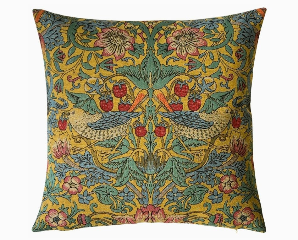 Yapatkwa Belgium, Strawberry Pickers Looking Outside (Wm. Morris) Decorative Tapestry Pillow / Cushion Cover, 18" x 18"