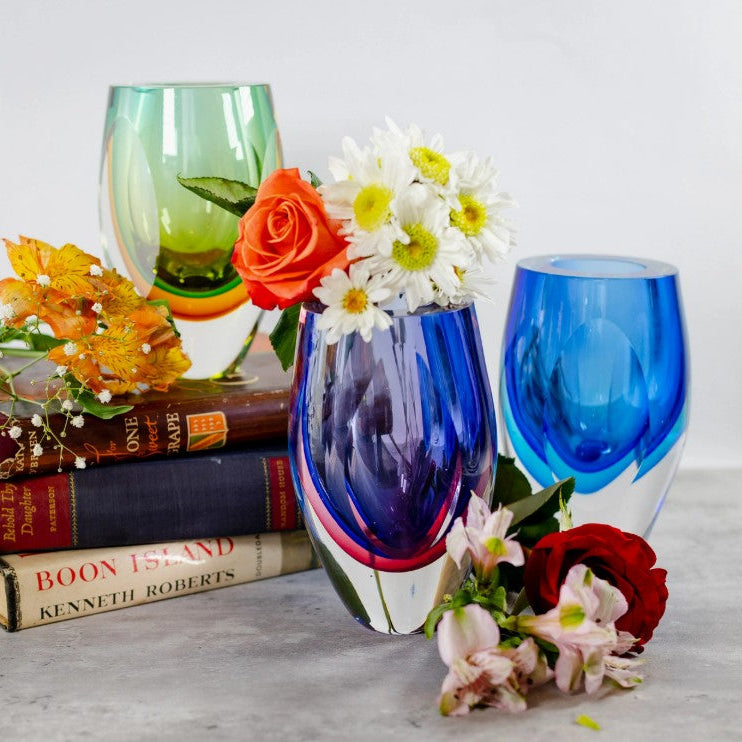Badash Décor, Azure Mouth Blown Murano-Style Crystal Vase, 6" Tall
