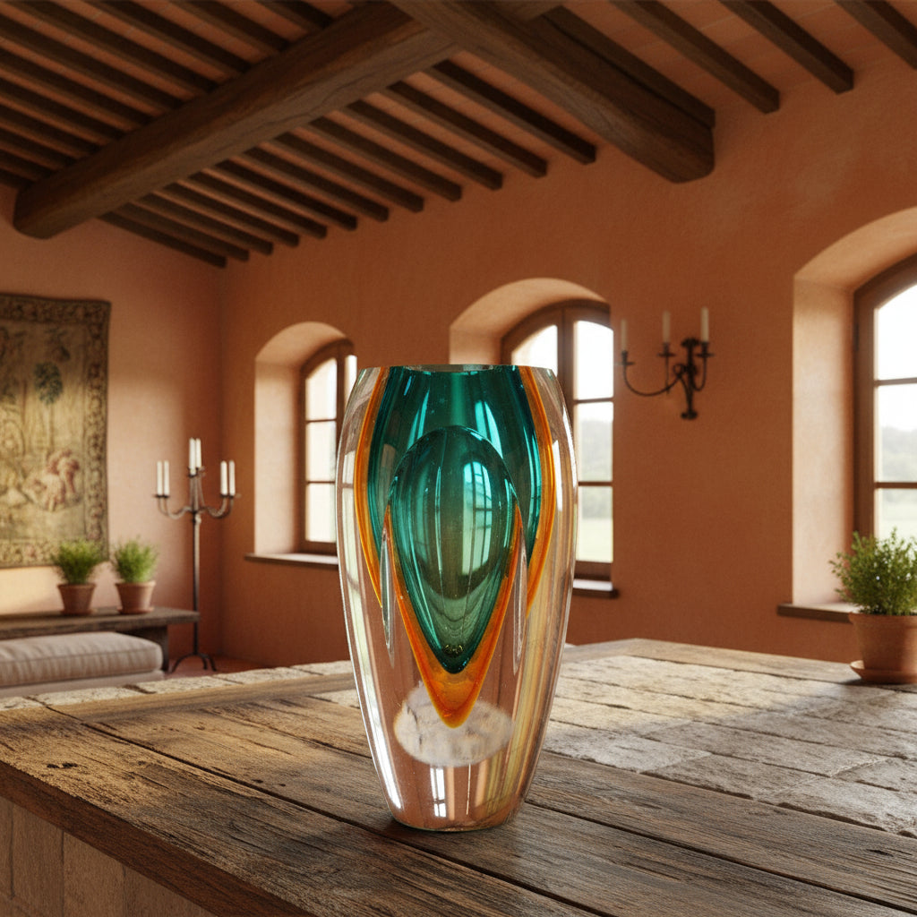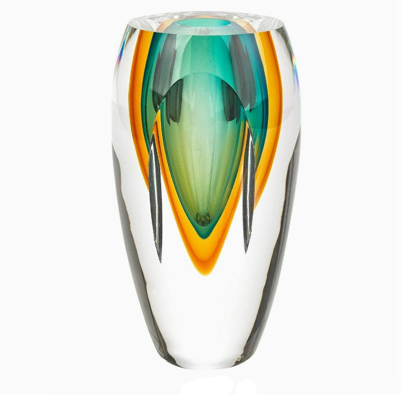 Badash Décor, Rimini Amber & Green Murano Style Art Glass Vase, 6"