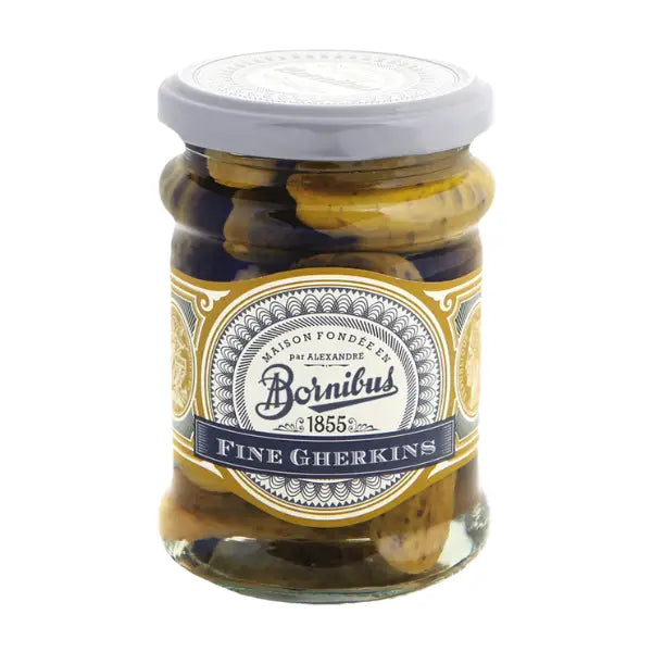 Crisp, tangy, and full of character, Bornibus Fine Gherkins are a timeless French staple crafted for those who appreciate the essence of authentic flavor. Carefully selected for their petite size and impeccable texture, these extra-fine cornichons are delicately preserved in a traditional vinegar brine—an age-old method that enhances their natural tartness while maintaining a satisfying crunch.