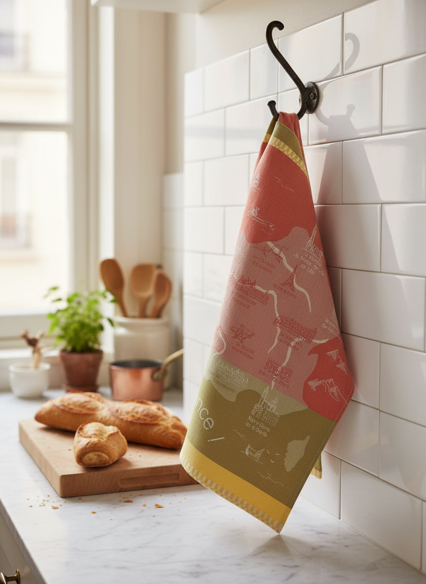 Coucke, "Les Monuments de France", Vermillion French Kitchen / Tea Towel