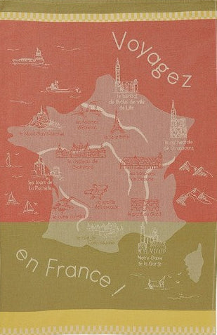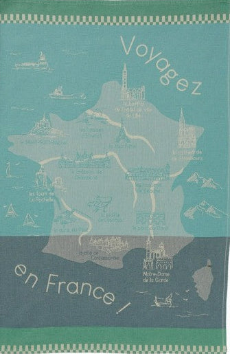 Experience the charm of France with the "Les Monuments de France" kitchen towel. Made from soft cotton, it displays a finely detailed map showcasing some of France’s most famous landmarks, combining functionality with elegant cultural flair.