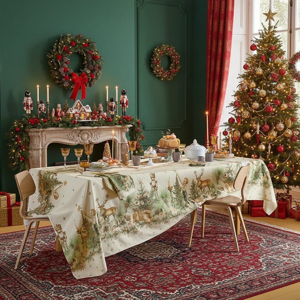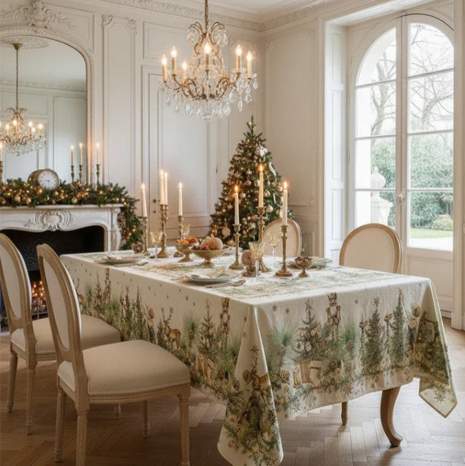 Garnier-Thiebaut, Noel Vintage Doré Christmas Tablecloth, Linen/Cotton Blend