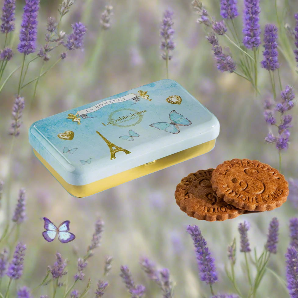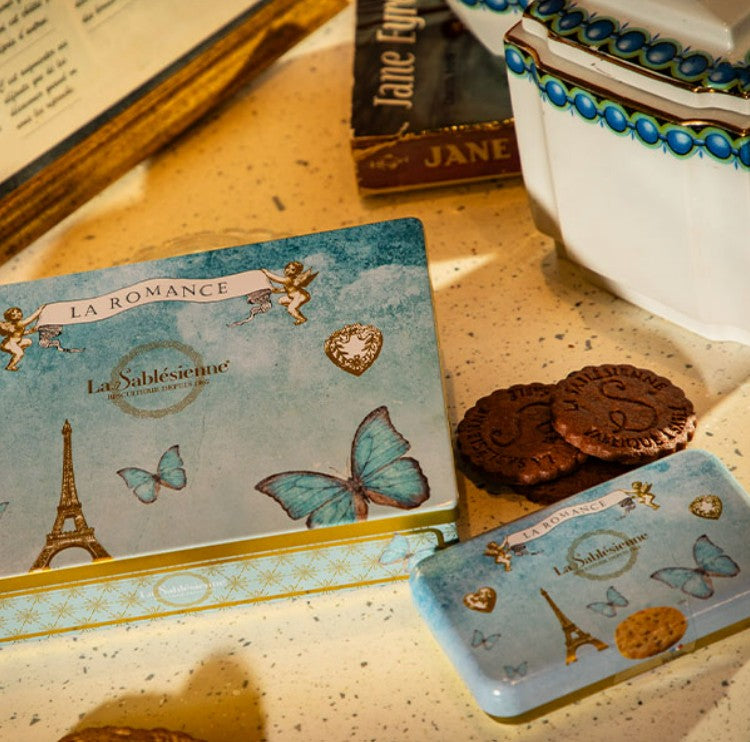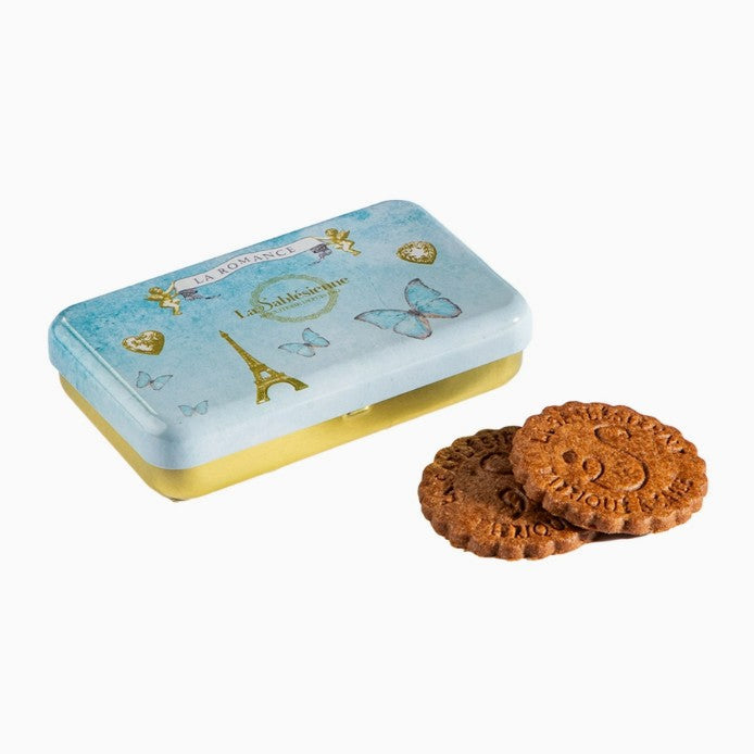 La Sablésienne, "La Romance" Caramel Chip Shortbread Cookies in Mini Tin, 1.3 oz