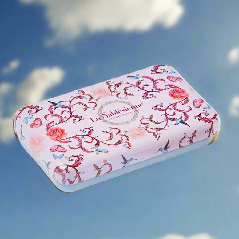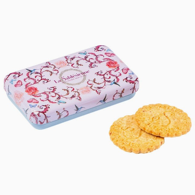 La Sablésienne, L'oiseau Bleu (Bluebird) Shortbread with Raspberry Chips Cookies in Mini Tin