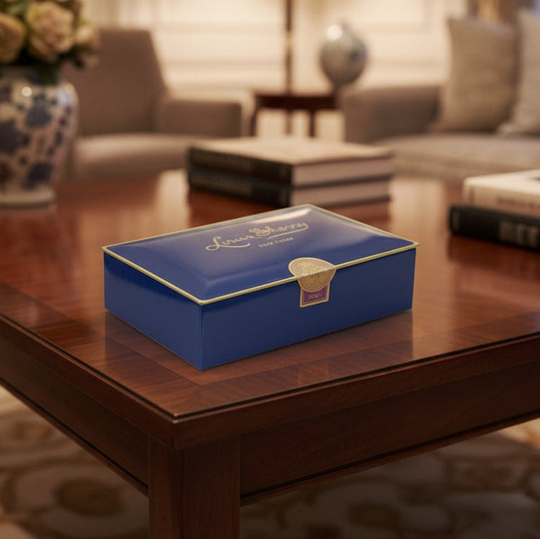 This Louis Sherry emblematic tin gift box is composed of a house selection of exquisite Louis Sherry truffles renown for their creamy texture and exceptional silkiness.