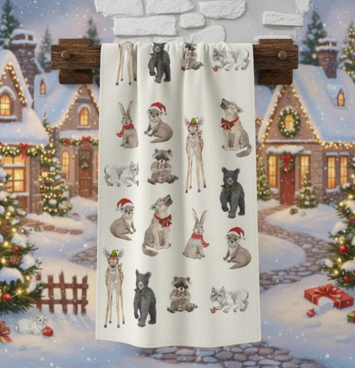 Charming baby animals dressed in festive hats and scarves line up on this delightful kitchen / tea towel. Perfect for holiday cheer, this fun and festive towel is sure to bring smiles to the whole family and makes a wonderful gift.