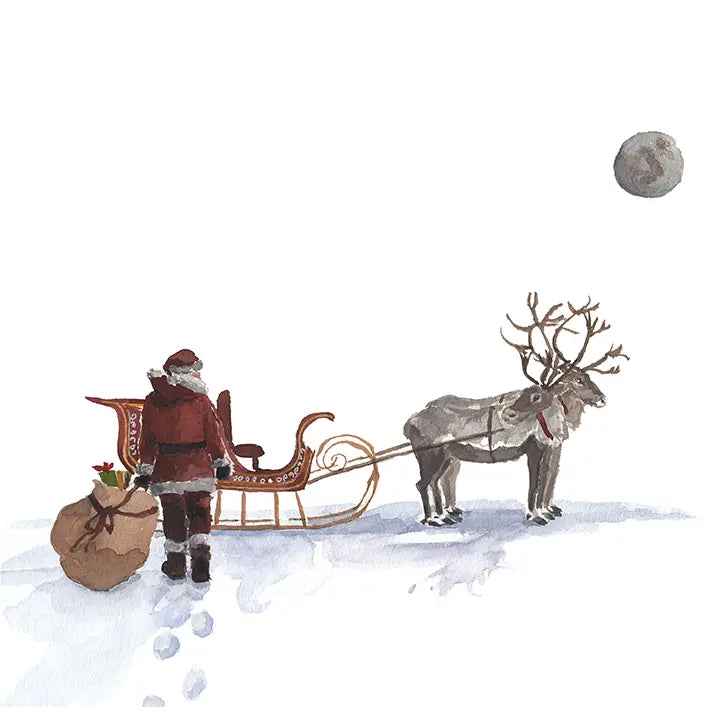 Maison Lorrain, Santa, Sleigh and Reindeer, French Kitchen / Tea Towel