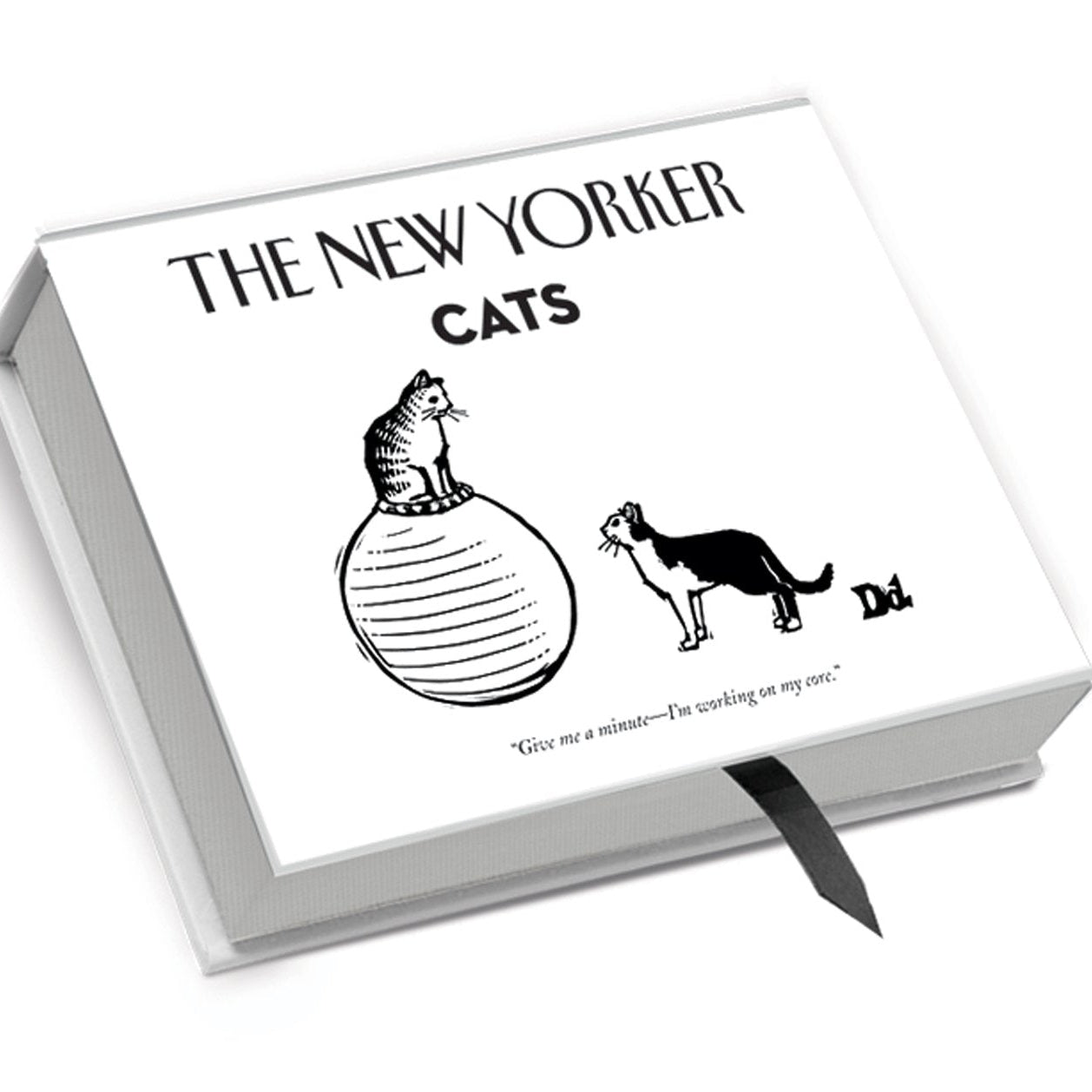 The refined look of these New Yorker Cats Boxed Notes, the fine paper note cards and matching envelopes, belies the curiosity of the cartoon cats inside. Cute and clever, these cards will find a warm reception wherever they end up.
