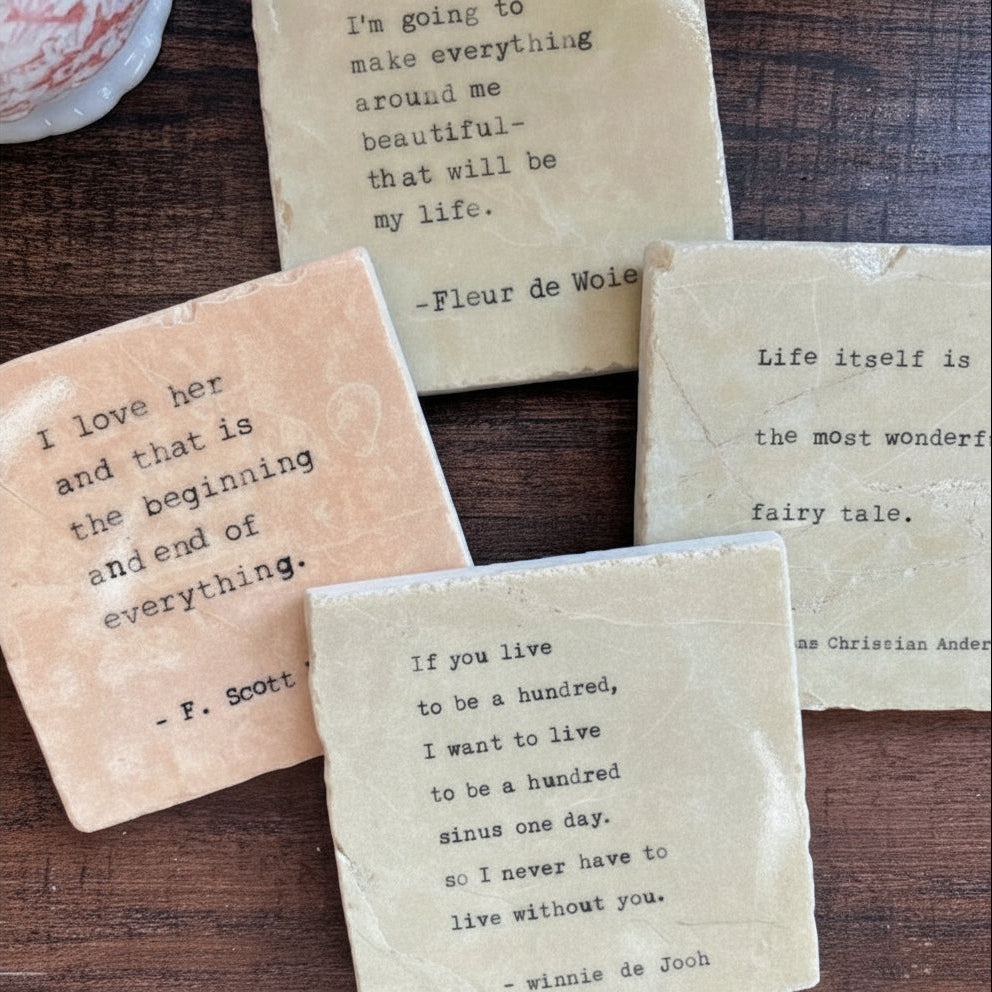 The Painted Lily, "Literary Words & Book Quotes" Tumbled Marble Coasters, Set of 12